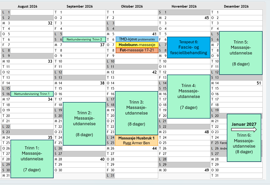 Kurskalender 2026-2027